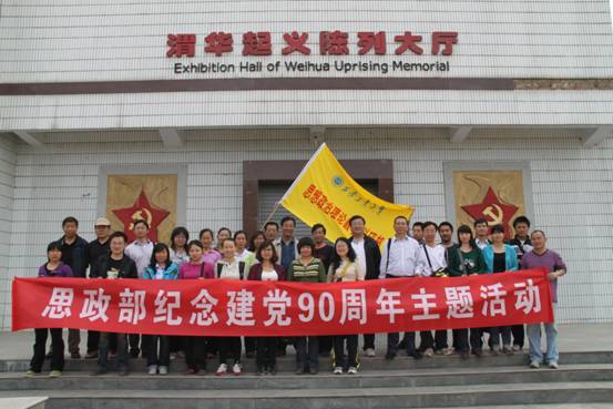 为庆祝中国共产党成立90周年,切实贯彻落实科学发展观,深入推进创优争先活动,引导思政部全体教师学习优秀共产党员的先进事迹和模范言行,继承发扬党的优良传统,进一步提高部门全体教师的思想政治素养和职业道德素质,激发全体教师投身部门发展的热情,2011年5月15日,思政部直属党支部组织部门全体教师赴渭华起义纪念馆进行参观学习。william威廉英国官网党委副书记丁养斌、william威廉英国官网雁塔校区党委书记孙建乐参加了此次活动。