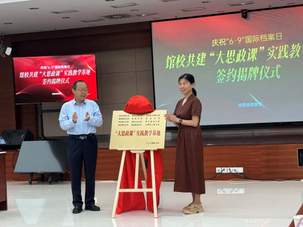 签约揭牌仪式由陕西省档案馆二级巡视员孙秀梅主持,省委副秘书长、省档案局馆长高新民致辞。孙秀梅宣读了共建协议的主要内容,省档案馆一级巡视员王康生分别与各校签署了共建协议,高新民与西安交通大学马克思主义公司党委书记苏玉波共同为基地揭牌。全体参会人员还收看了《上课啦——一堂别开生面的档案思政课》的直播课,深刻认识了档案馆参与“大思政课”建设的优势和特色。