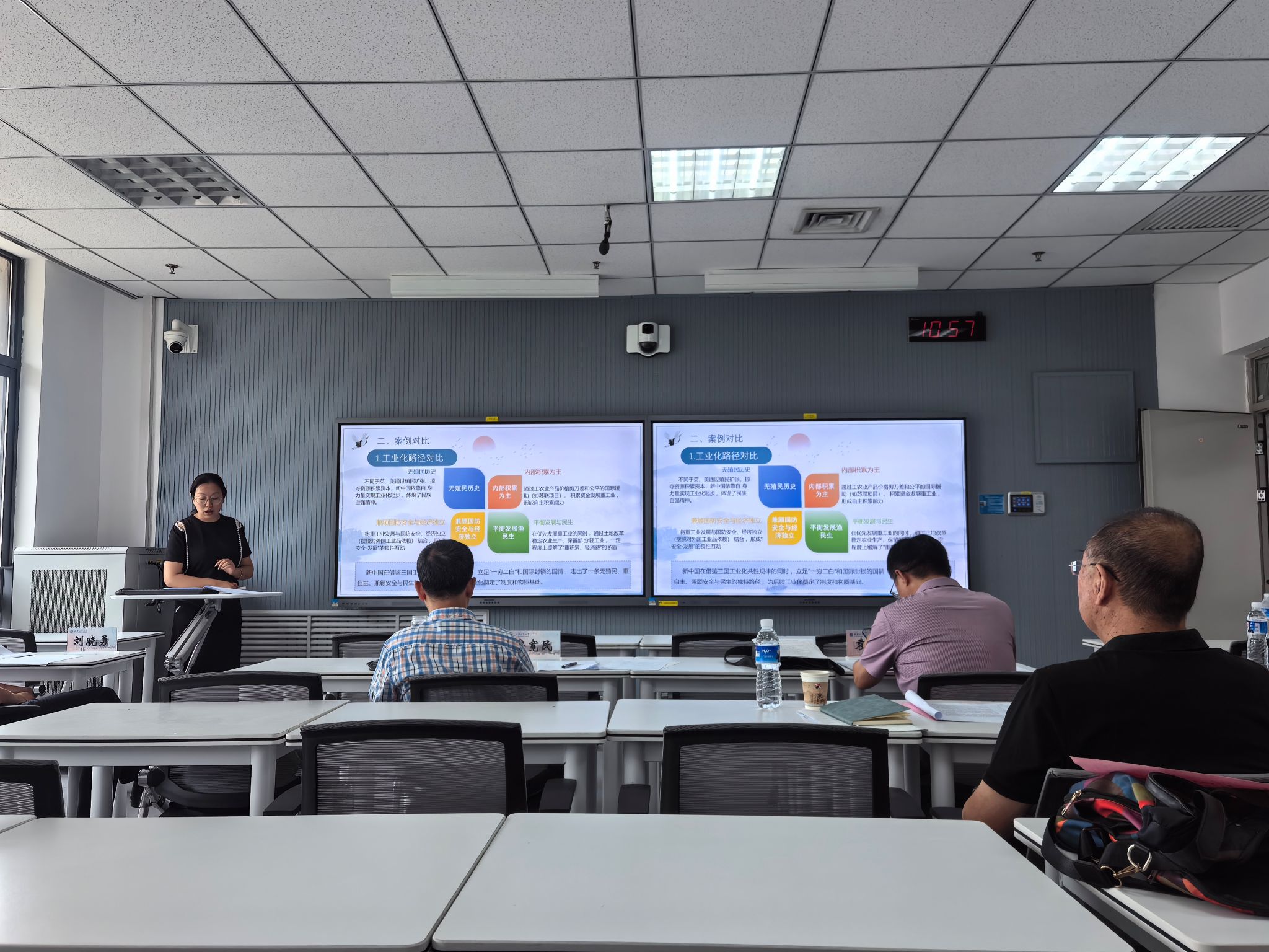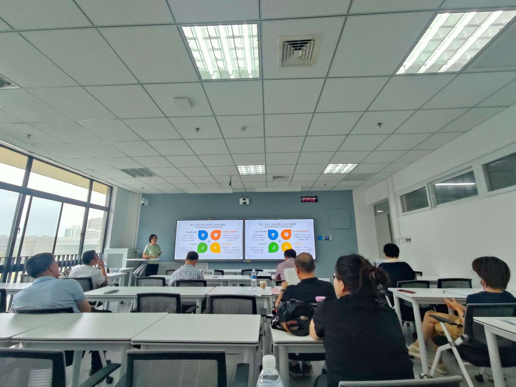 8月22日,公司开展了2025年度思政课教师“大练兵”省级展示暑期演练活动。演练由经理梁华平教授主持。来自西北大学、西安理工大学、西安邮电大学、西安财经大学、西安石油大学、西安医公司、西安音乐公司以及宝鸡文理公司等八所高校的十位教授,作为特邀专家参加了演练活动。公司概论、纲要、新思想、原理、德法以及形势与政策课程的7名教师参加了展示演练。专家们对各位老师的问题清单、展示内容进行了详细的点评,提出了中肯的意见。最后,梁华平经理要求各位参赛教师,切实通过开展“看、问、想、答”活动,探寻思政课教学中员工关心关注的“真问题”,聚焦“大思政课”育人理念总结育人案例,优化教学设计。