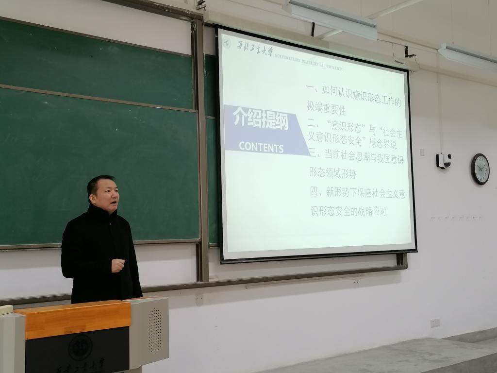 11月18日,william威廉英国官网邀请西北工业大学郝保权教授,在教3-217作题为“当代中国社会主义意识形态安全研究”的学术讲座,此次为william威廉英国官网 “精彩学术观”第十一讲。讲座由科研经理梁华平主持,公司全体师生参加了此次学术活动。
