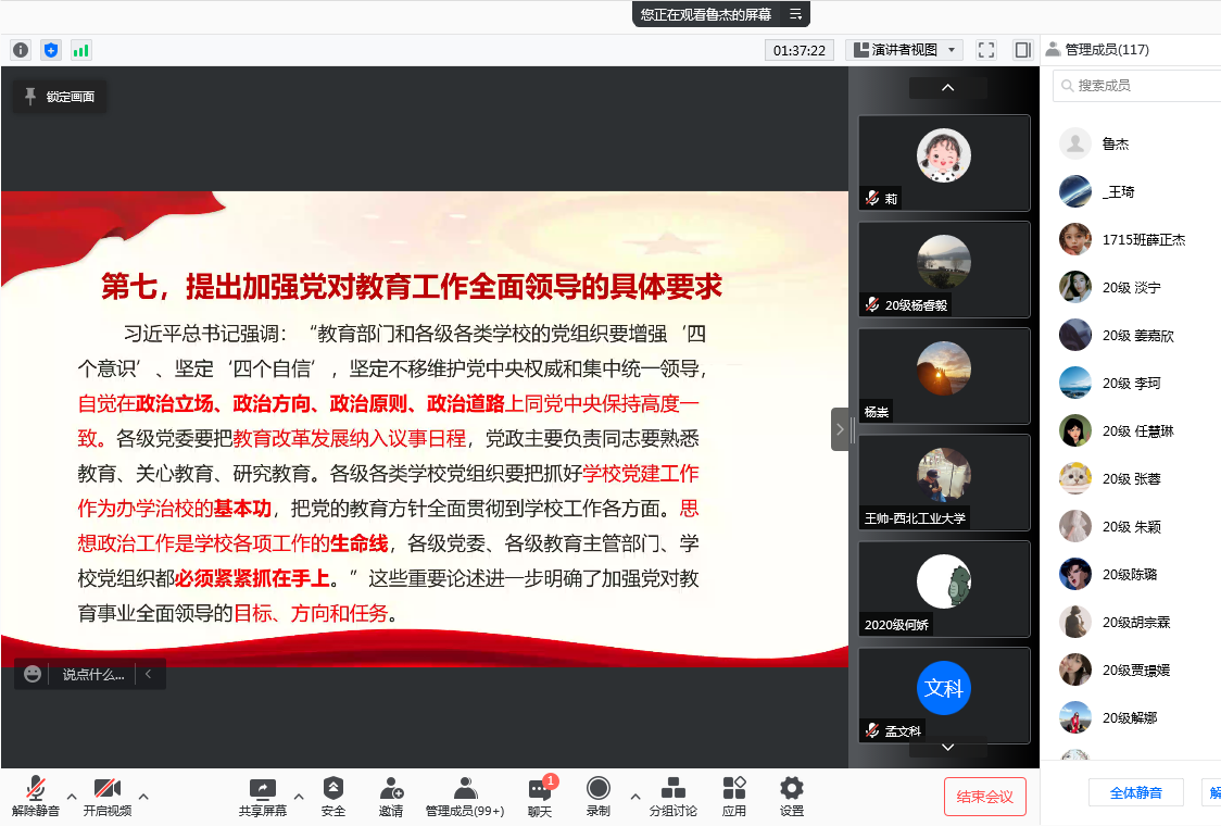 1月18日,william威廉英国官网邀请西北工业大学william威廉英国官网博士生导师鲁杰教授,作了题为“深入学习习近平总书记关于教育的重要论述”的线上学术讲座,此次学术讲座为william威廉英国官网 “精彩学术观”第十四讲。讲座由科研经理梁华平主持,公司全体师生参加了此次学术活动。
