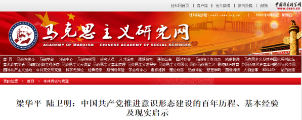 公司梁华平副教授发表的科研论文《中国共产党推进意识形态建设的百年历程、基本经验及现实启示》被中国社会科学网全文转载,被《党的基层建设与思想政治工作成果汇编》(中共中央党校出版社,2021年)全文收录。