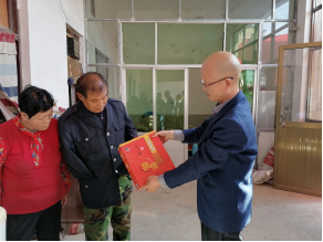 杨灏代表公司为陈平顺送上慰问金,并送去教职工捐赠的慰问品食用油、面粉等生活必需品,以及教职工个人捐助的现金700元。