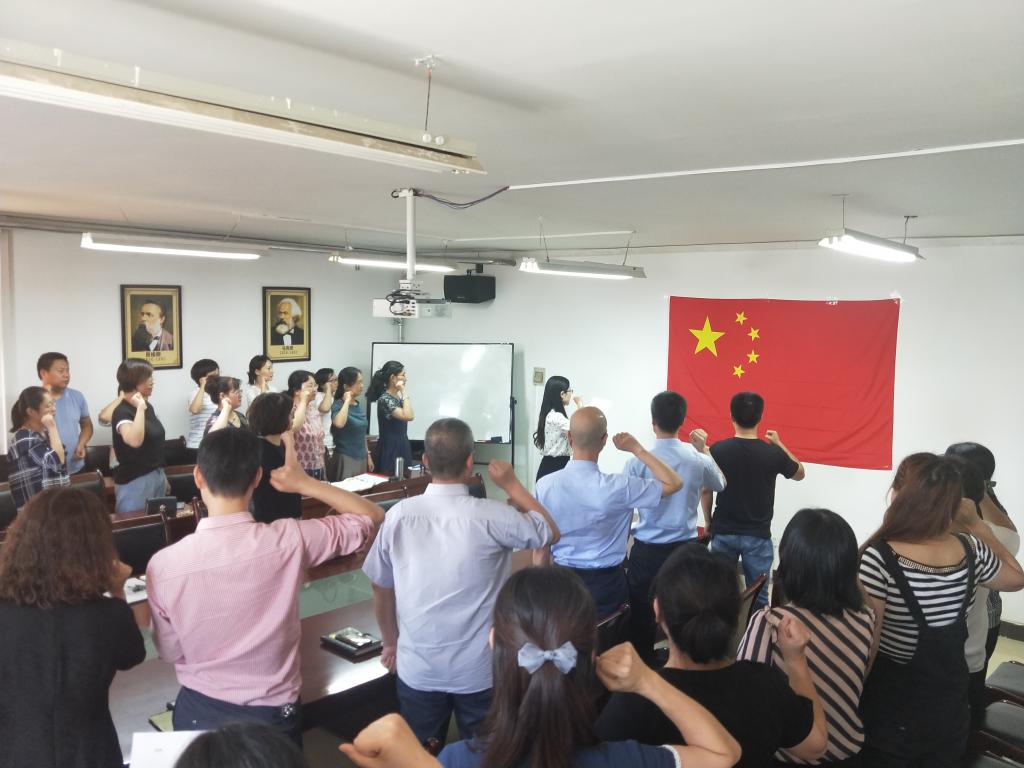 会议第二阶段,公司开展师德师风宣誓活动。在冯婷老师的带领下,公司教师面向国旗庄严宣誓:我志愿作一名光荣的人民教师……,嘹亮的宣誓声表达自己作为一名教师的自豪感和使命感。此次宣誓活动拉开了公司2020年师德师风建设月的帷幕,倡导全体教师用习近平新时代中国特色社会主义思想铸魂育人,落实立德树人的根本任务,争做“四有好老师”。