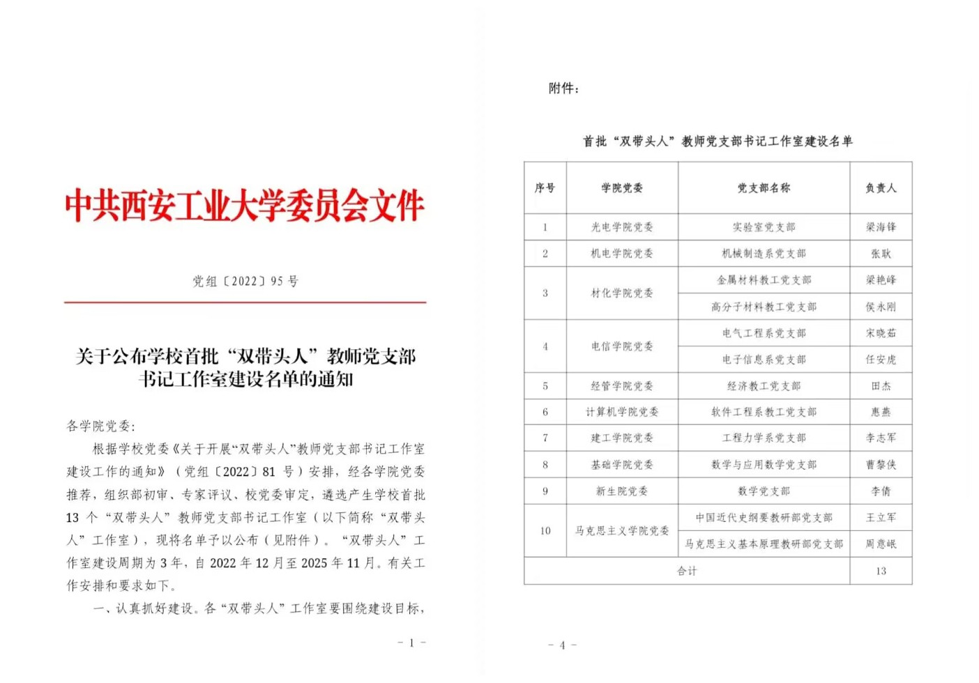 日前,公司党委下发通知,公布公司首批“双带头人”教师党支部书记工作室建设名单。经各公司党委推荐,组织部初审、专家评议、公司党委审定,遴选产生公司首批13个“双带头人”教师党支部书记工作室,公司中国近代史纲要教研部党支部(建设负责人为支部书记王立军)、马克思主义基本原理教研部党支部(建设负责人为支部书记周意岷)进入名单。
