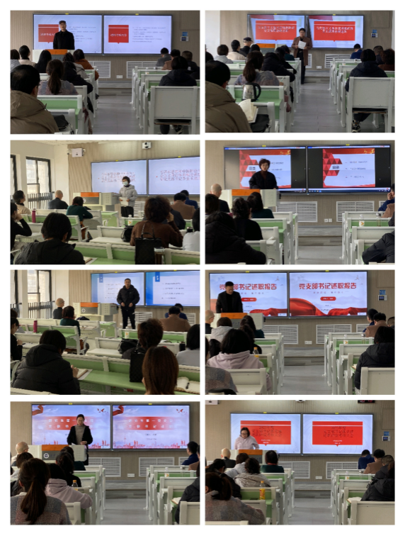 马克思主义基本原理教研部党支部书记周意岷、毛泽东思想和中国特色社会主义理论体系概论教研部党支部书记李金玉、习近平新时代中国特色社会主义思想概论教研部党支部书记张敏、中国近现代史纲要教研部党支部书记王立军、思想道德与法治教研部党支部书记赵东、研究生第一党支部书记杨婧、研究生第二党支部书记王亚茹等七个党支部书记,围绕扎实开展主题教育,推进习近平新时代中国特色社会主义思想“三进”情况:围绕落实支部党建工作责任、书记履行第一责任人职责,支委其他成员履行职责,落实上级党组织工作安排情况;聚焦增强支部政治功能和组织功能,围绕“公司活力提升年”,在推进党建和公司产品深度融合方面彰显支部党建工作成效情况;贯彻落实支部工作条例、推进支部科学化规范化建设、样板支部建设、“双带头人”教师党支部建设等情况;意识形态工作责任制和师德师风日常教育等情况等五个方面,一一进行了现场述职,并在深入查找、分析问题的基础上,提出了2024年支部党建工作努力方向及整改措施。