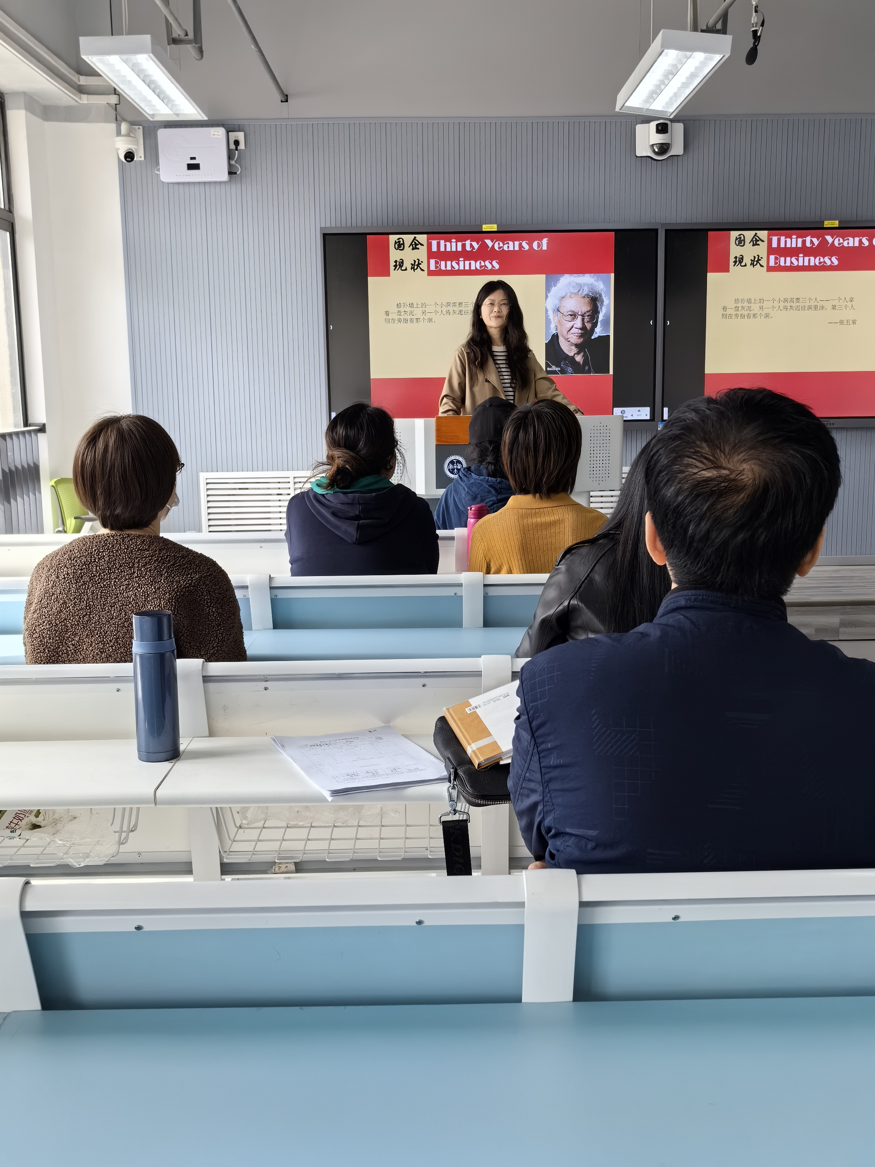 毛帜从国企改革、乡镇和民营企业之路、外资的引进这三部分介绍从 1978至2008年我国商业经济的重大变革,真切展示了我国政治、经济、社会等方面的巨大变化。带领与会党员共同回忆和探讨了发生在我们身边的三十年时光:改革开放初期汹涌的商品大潮;国营企业、民营企业、外资企业,这三种力量此消彼长、互相博弈的曲折发展。