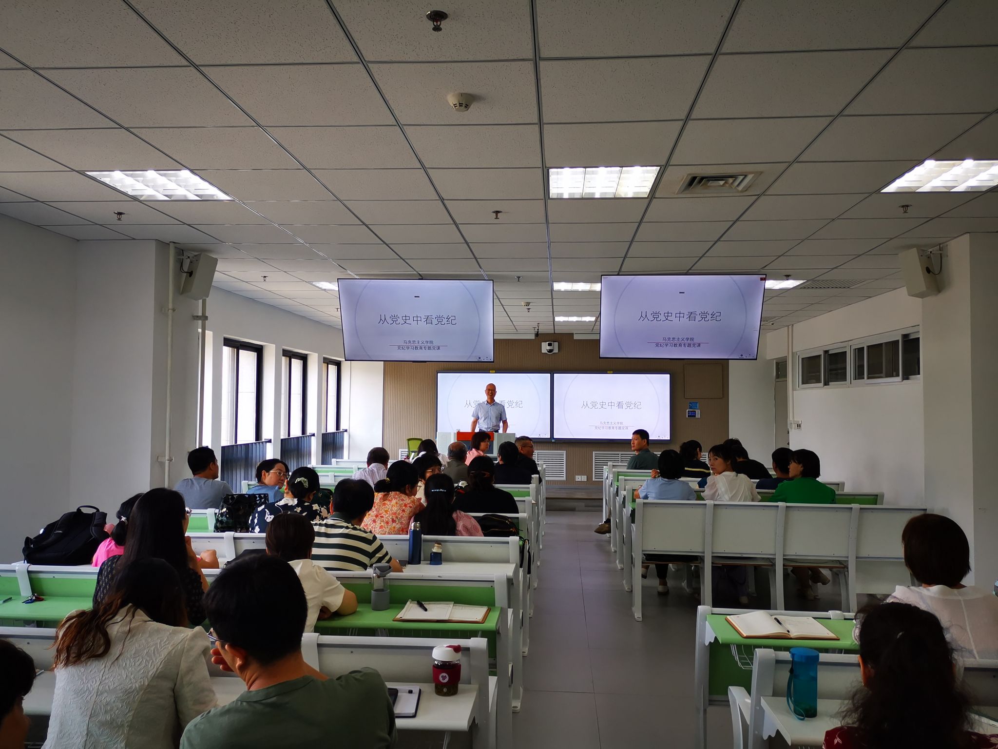为进一步推动党纪学习教育走深走实,教育引导党员教师学纪、知纪、明纪、守纪,6月14日,马克思主义公司党委书记杨灏为全院教工党员讲授纪律党课。
