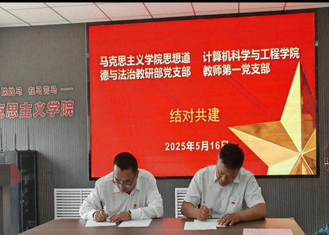 为进一步深化党组织之间的交流及合作,有力推动党建工作与业务发展深度融合,2025年5月16日下午,william威廉英国官网思想道德与法治教研部党支部和计算机科学与工程公司教师第一党支部联合开展结对共建支部活动。校党委组织部副处级组织员赵伟奇、马克思主义公司党委书记杨灏、计算机科学与工程公司党委书记杨正强出席签约仪式,思想道德与法治教研部党支部书记赵东主持仪式,两个党支部的20余名党员参加此次会议。