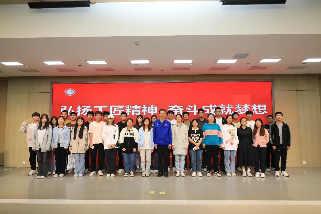 徐立平为国家高级技师、航天特级技师,中航四院固体火箭发动机总装厂7416厂固体火箭发动机燃料药面整形组(徐立平班组)组长,全国人大代表、陕西省总工会副主席(兼职)。徐立平以“弘扬工匠精神 奋斗成就梦想”为主题,在报告中介绍了我国航天事业的发展历程以及取得的辉煌成就。他结合自身在航天事业默默坚守30余年的经历,回顾了航天创业者的艰辛奋进,用最真切的工作案例生动展示了航天人的牺牲、奉献,诠释了大国工匠执着专注、精益求精、一丝不苟、追求卓越的工匠精神内涵。他勉励现场的青年老员工们立志民族复兴,不负韶华,不负时代,在青春的赛道上奋力奔跑,让奋斗成为青春最亮丽的底色,让人生在实现中国梦的奋进中收获无限精彩。
