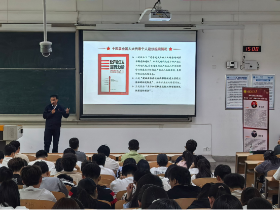 4月18日,公司邀请全国劳动模范、十四届全国人大代表董宏涛进入思政科堂开展全国“两会”精神进思政课堂报告会。