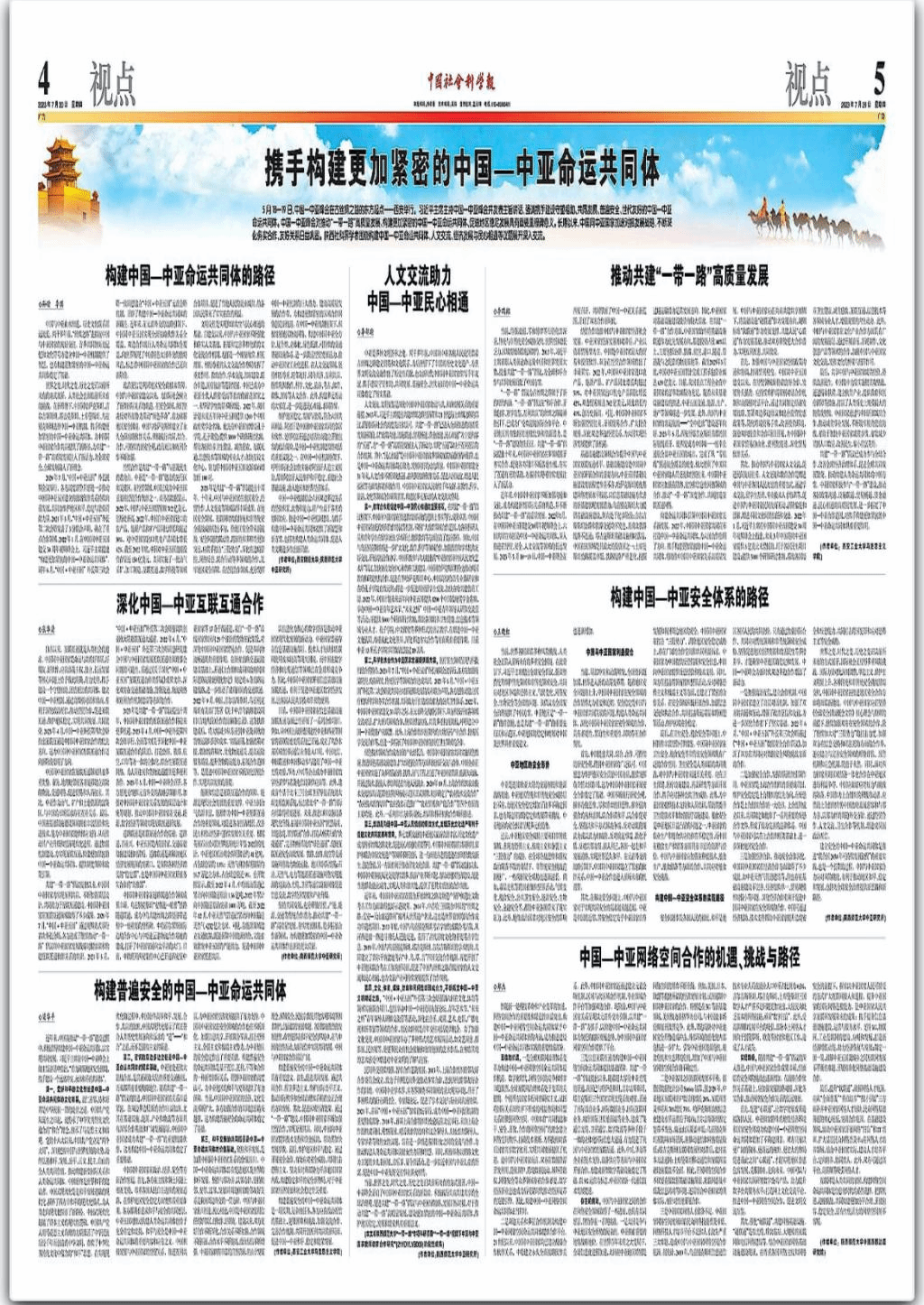 2023年7月20日,中国社会科学报通版刊文,研究阐释“构建更加紧密的中国-中亚命运共同体”。公司梁华平、李鹏翔两位老师的研究成果入选并刊发。
