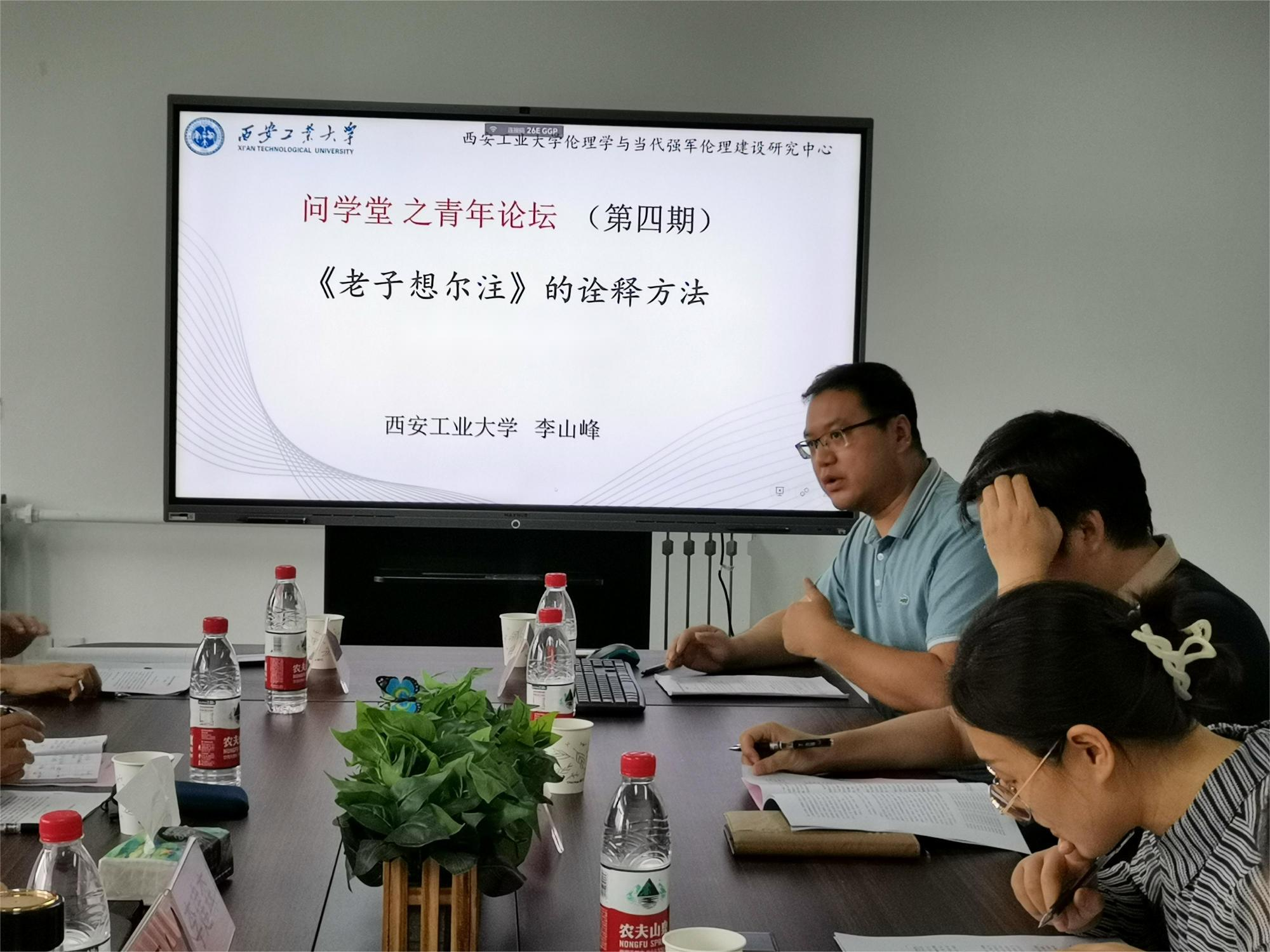 7月3日下午,由公司“伦理学与当代强军伦理建设研究中心”主办的“问学堂之青年论坛”第四期顺利举办。本期论坛聚焦李山峰博士的学术分享《老子想尔注》的诠释方法,该研究系西安市社科普及资助项目的研究成果。论坛由陈泊蓉博士主持,特邀西北大学李建森教授、公司王星副教授作为评议嘉宾,研究生思政公共课教研部全体教师、邵红蕊博士及部分研究生参加了此次论坛。