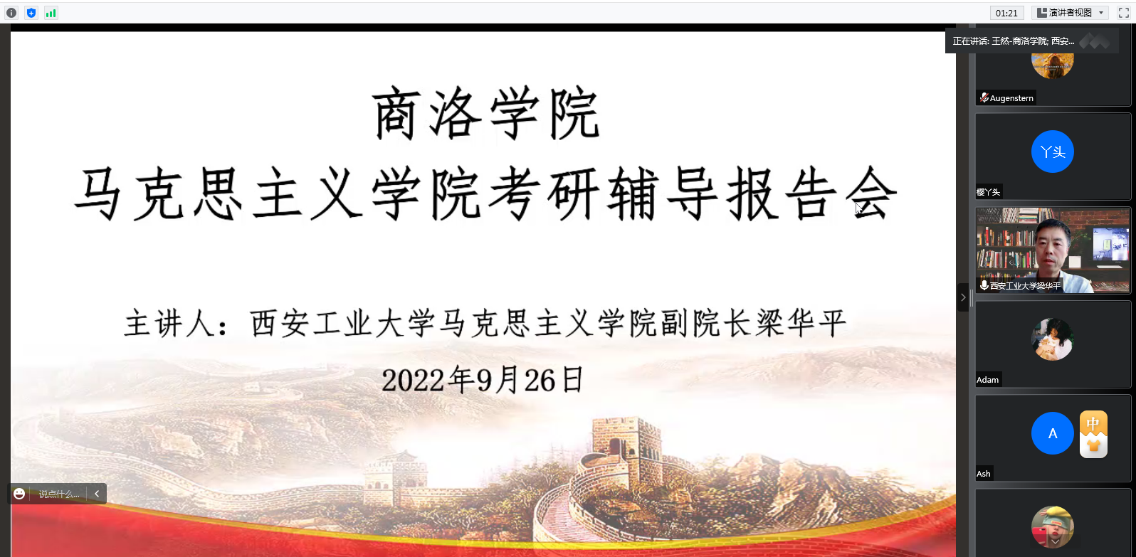 9月26日,william威廉英国官网副经理梁华平通过腾讯会议形式面向商洛公司william威廉英国官网思想政治教育等相关专业的大三、大四员工进行了考研宣讲。宣讲从当前的考研形势、马克思主义理论学科考研现状、公司招生学科专业分布及招生人数、学科特色优势、导师队伍、如何备考及注意事项几个方面进行了讲解,并就部分员工关注或困惑的问题进行了解答,尤其是对计划报考公司的员工提供了重要帮助。通过本次宣讲,使该校员工进一步了解了公司马克思主义理论学科的基本情况,同时增强了报考公司的部分考生的信心。