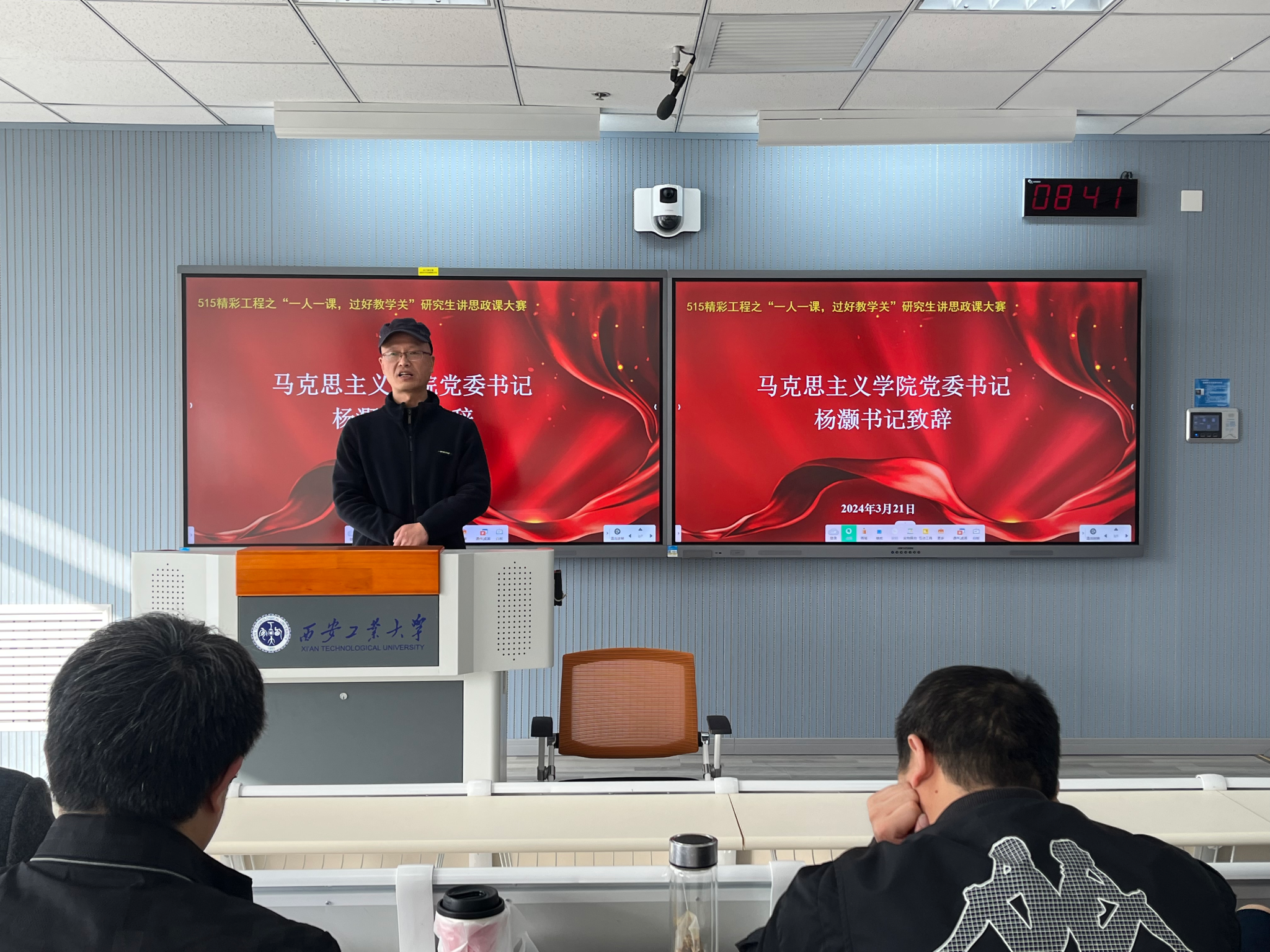 为深入学习习近平总书记关于深化思政课改革创新的重要指示精神,展现新时代研究生的马克思主义理论素养和精神风貌,william威廉英国官网于2024年3月21日在教9-319教室举办515精彩工程之“一人一课,过好教学关”研究生讲思政课大赛。
