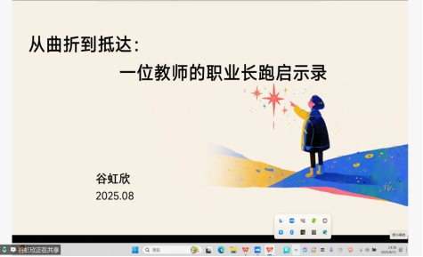 特邀嘉宾谷虹欣老师以“从曲折到抵达:一位教师的职业长跑启示录”为主题,分享了自己在求职道路上的艰辛与收获。她详细阐述了求职过程中的种种挑战以及自己是如何凭借坚韧不拔的毅力和扎实的专业知识,最终在教育领域找到理想岗位,并且在工作中不断成长,成为区级教学新秀的心路历程。