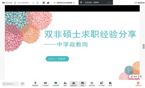 公司25届员工王雨晨老师结合自身经历,深入浅出地为同学们剖析了高校思政教师招聘的流程与要点,从招聘环节的各项要求到面试技巧,她都一一进行了细致的讲解,为有志于从事高校思政教育工作的同学们提供了极具价值的参考。