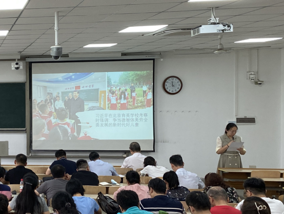 会议学习了《习近平在北京育英公司考察时强调 争当德智体美劳全面发展的新时代好儿童 向全国广大少年儿童祝贺“六一”国际儿童节快乐》。会议指出,“六一”前夕到北京育英公司考察,充分体现了习近平总书记对教育的高度重视和对少年儿童的关心关爱。要认真学习贯彻总书记重要讲话精神,落实立德树人根本任务,在实现德智体美劳全面发展的事业中发挥好思政课的作用。